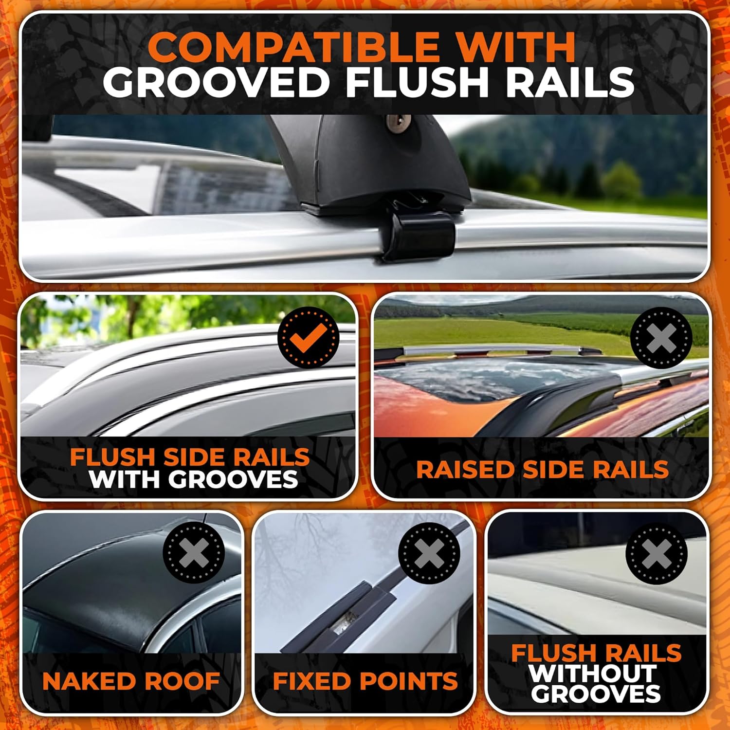 ENHANCE YOUR VEHICLE’S STORAGE: Our Car Roof Rack for Flush Rails Cross Bars is the perfect addition to expand your roof racks, allowing you to carry more gear and equipment with ease. It can even act as a kayak roof rack for your car.