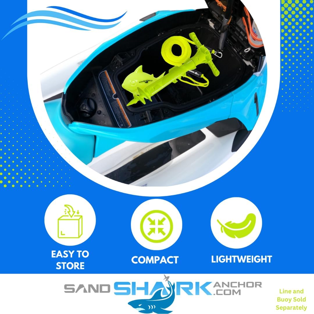 Designed for Durable, Reliable Anchoring – Our Jet ski Anchor patent pending design is made with high-quality, engineering-grade ABS plastic for superior strength and shock resistance. Unlike bulkier, heavier boat anchors, SandShark’s Sport sand anchor is as strong as it is lightweight, and features a bright neon green color for high visibility.