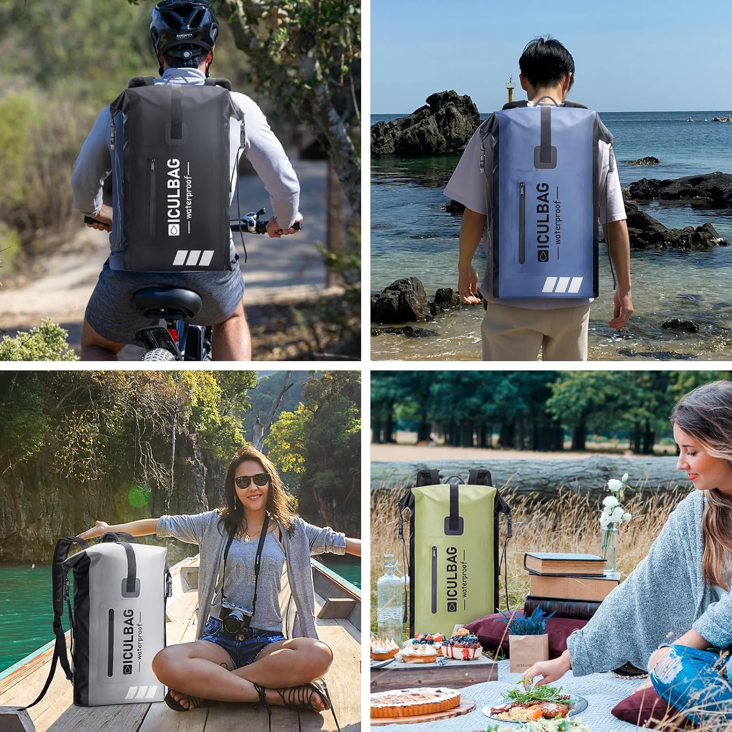 Waterproof Bag for Travel:The Iculbag Small Dry Bag Backpack has a 20L capacity and includes an inner bag within the main compartment for storing small travel essentials. This waterproof backpack for women men ,is designed with an adjustable and removable shoulder strap at the back. The surface is constructed from waterproof material, facilitating easy cleaning – simply rinse with water and allow it to dry.