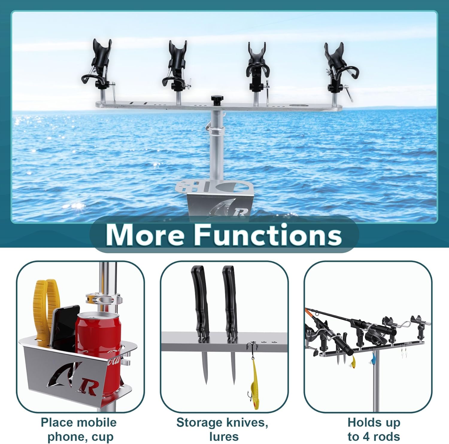 Design: The spider rig rod holders for boat comes with fishing equipment organizer to hold water cups, pocket knives, phones, lures and other tools, meanwhile, the rod holder can also hold knives, lures and so on, which can bring you a pleasant shopping experience