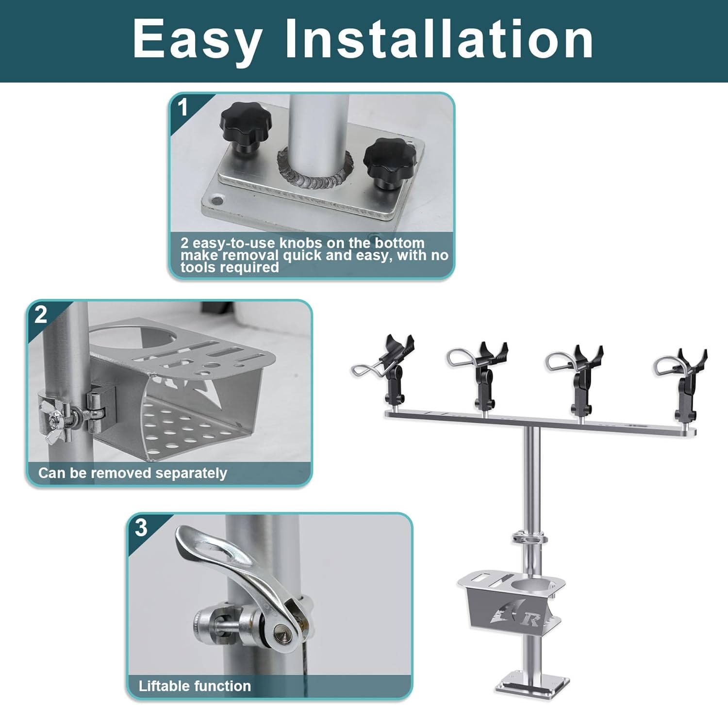 Design: The spider rig rod holders for boat comes with fishing equipment organizer to hold water cups, pocket knives, phones, lures and other tools, meanwhile, the rod holder can also hold knives, lures and so on, which can bring you a pleasant shopping experience