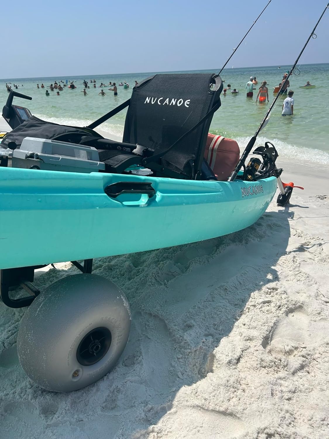 12” BEACH QUICK-RELEASE WHEELS | The Beach Wheels have a quick release feature providing an easy way to have your kayaks and SUPs float and roll effortlessly over a sandy beach, rocky gravel or grass and pavement too! (Optional 12″ Mag-Lite wheels)