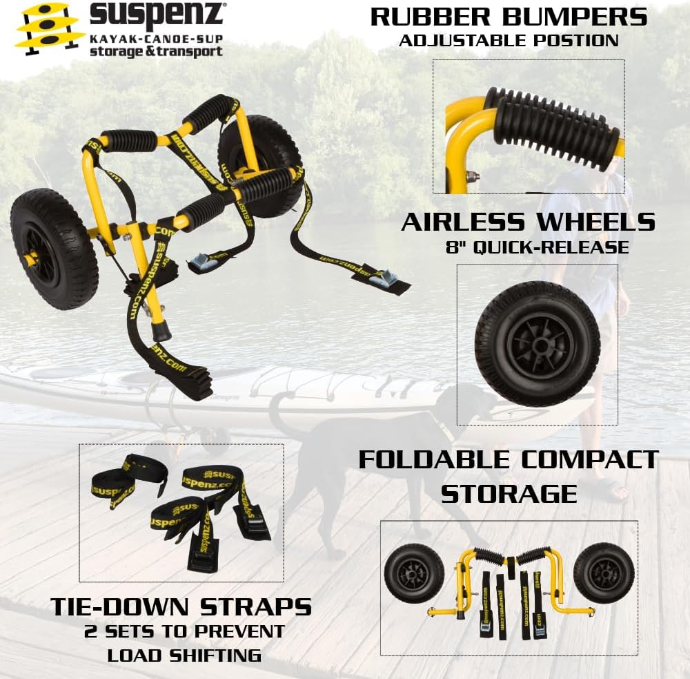 Be the first to review “Suspenz Stowable Kayak Carrier Cart, SK Trailer Cart with Airless Wheels and Straps, Yellow, (22-1166)”