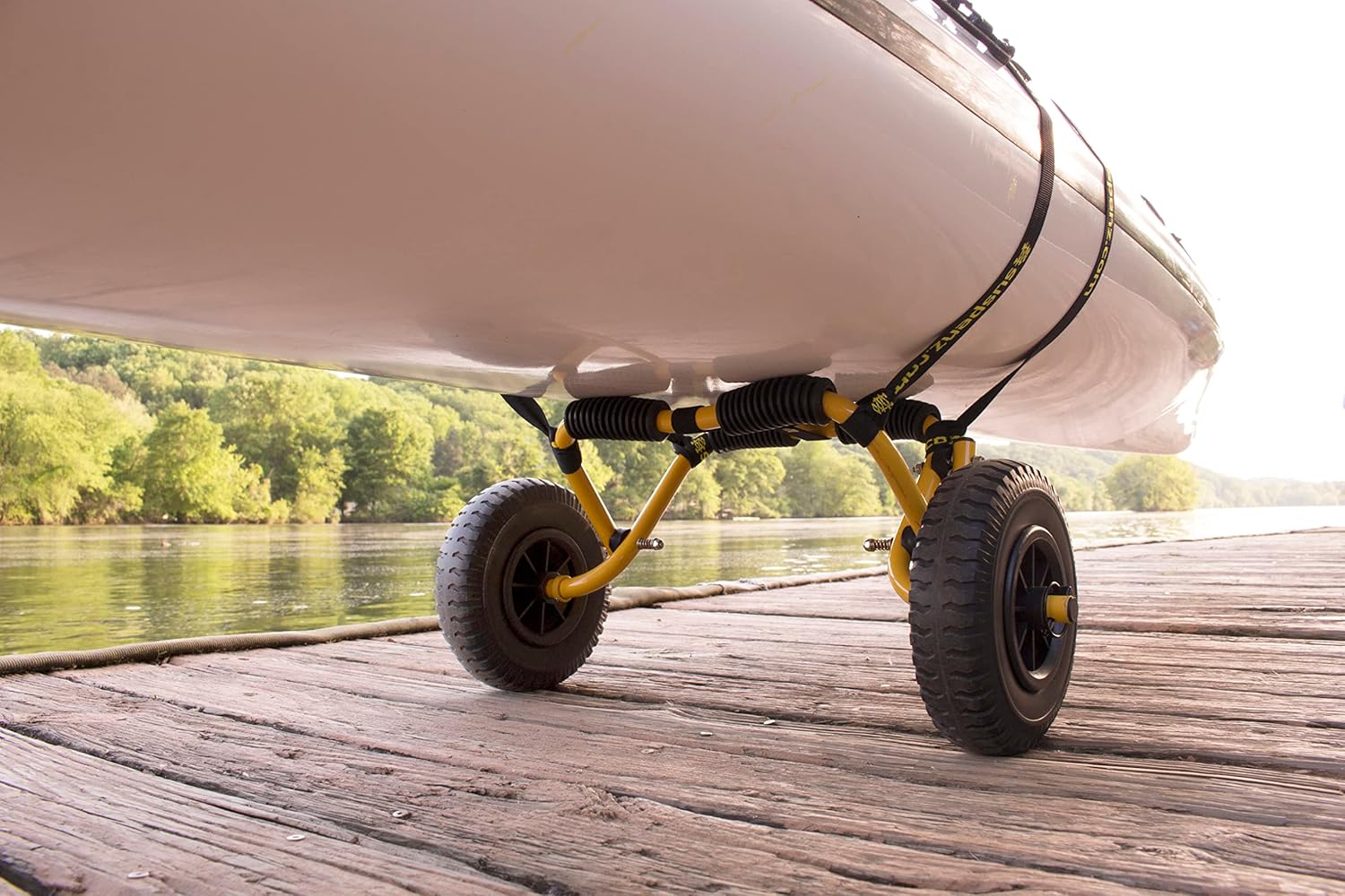 Suspenz Stowable Kayak Carrier Cart, SK Trailer Cart with Airless Wheels and Straps, Yellow, (22-1166)