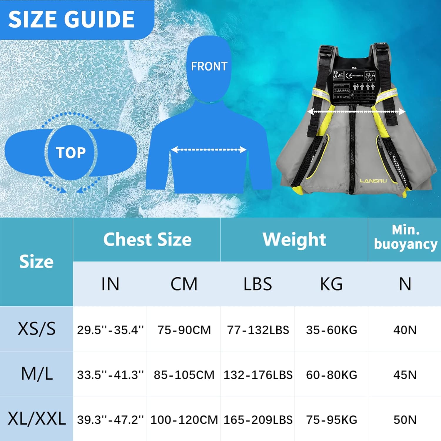 Fit for Water Activities: Lansru swim vest for adult is great for enjoy different water sport, like boating, kayaking, fishing, paddle boarding, canoeing.The bright colors and reflective strips make it easy to spot in the water.