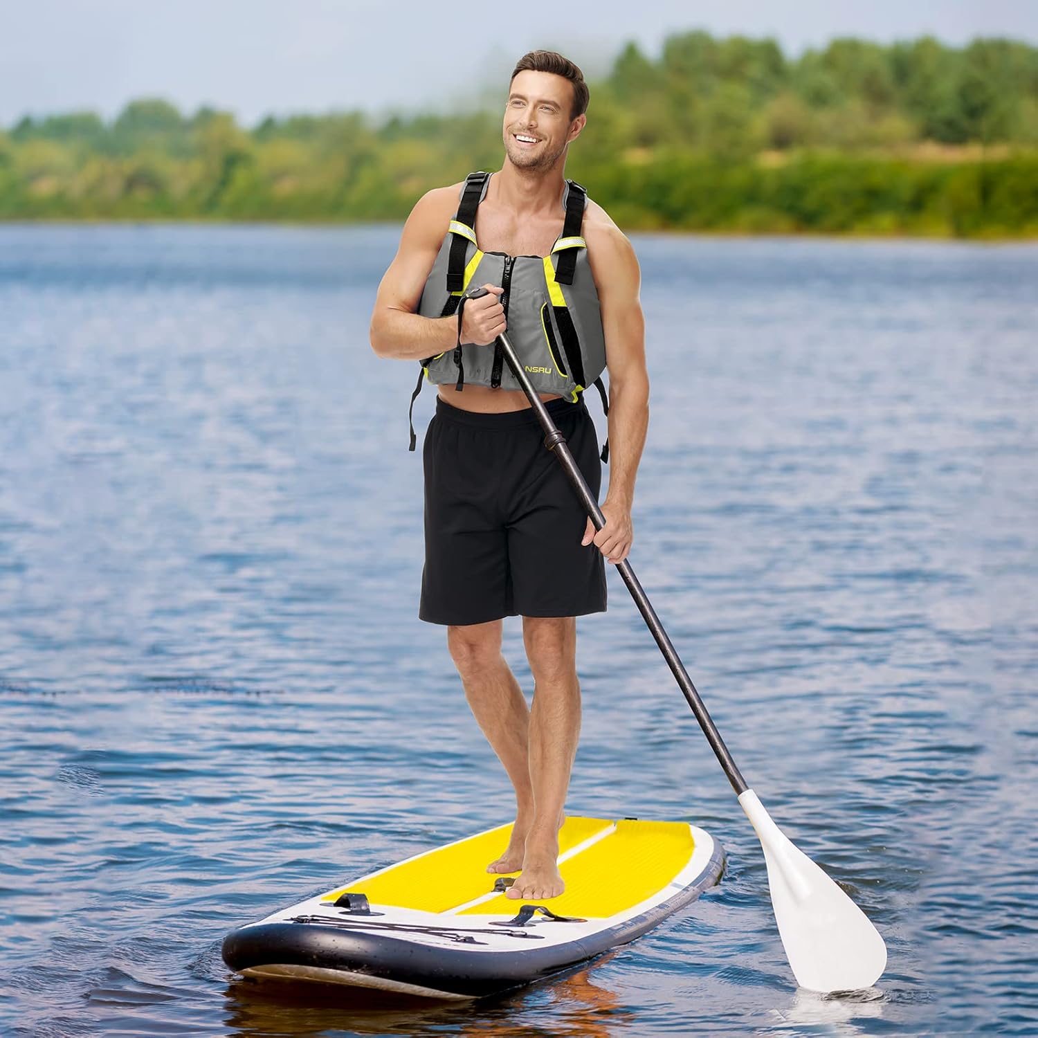 Swim Vest Adult Kayaking, Buoyancy Swim Jacket with High Back Mesh Adjustable Safety Strap for Men Women, Paddle Boarding Fishing Boating Diving Paddle