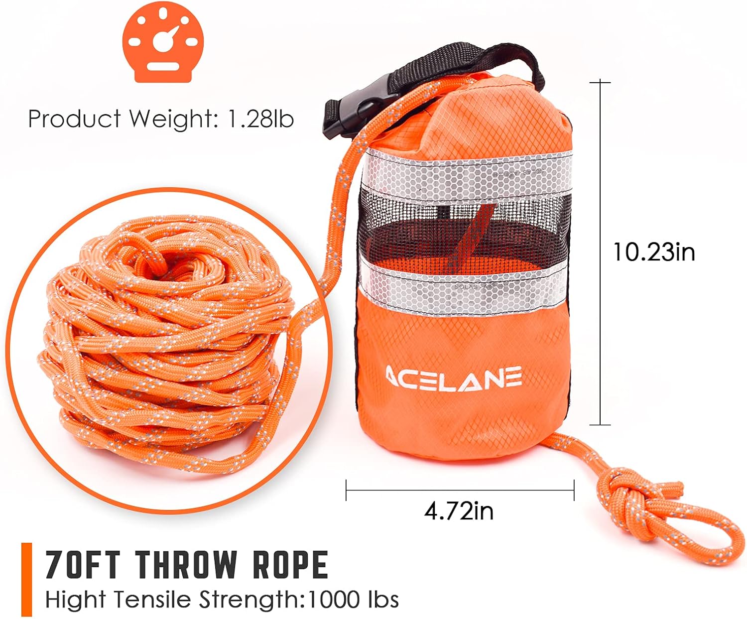 Throw Bag for Water Rescue with 70ft Reflective Throw Rope, Floating Rescue Ropes for Whitewater Boating, Kayaking, Ice Fishing, Rafting, Swimming, High Visibility Safety Boating Equipment
