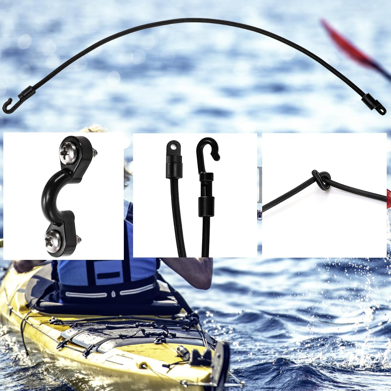 The kayak bungee kit is attached with deck loop pad eye, open hook ends, screws, etc., convenient for you to install on deck, just screw one side end firstly on deck, stretch the rope out straightly and fix the another side end to have some tension, very easy to operate.