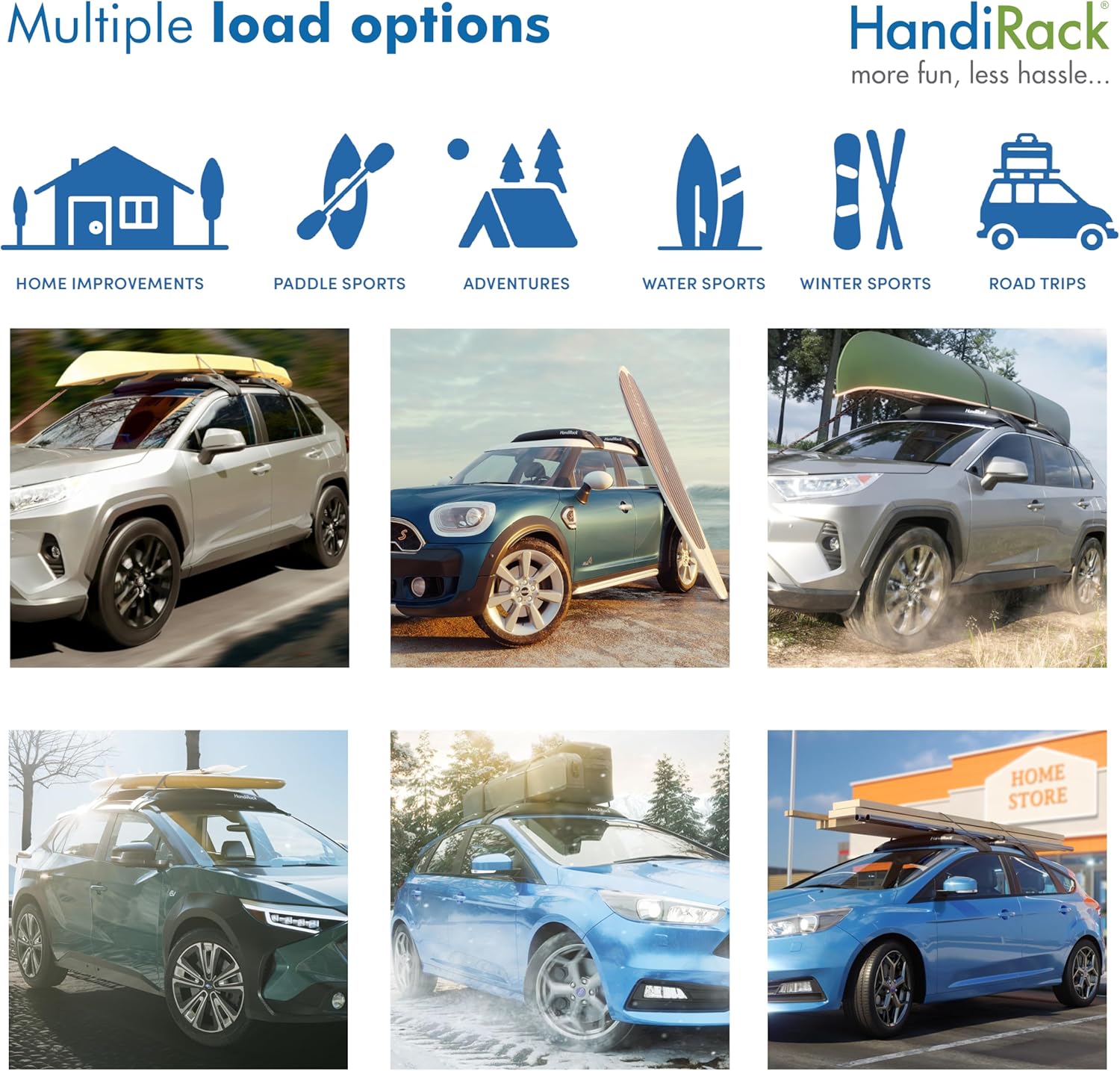 YOUR HAUL MADE EASIER: A smart roof rack to transport your gear. Ideal kayak rack for cars and SUVs. Transport canoes, paddle boards, surfboards, snowboards, skis safely and securely on this car roof rack. 175lbs load capacity. Great alternative to foam blocks for surfing trips.
