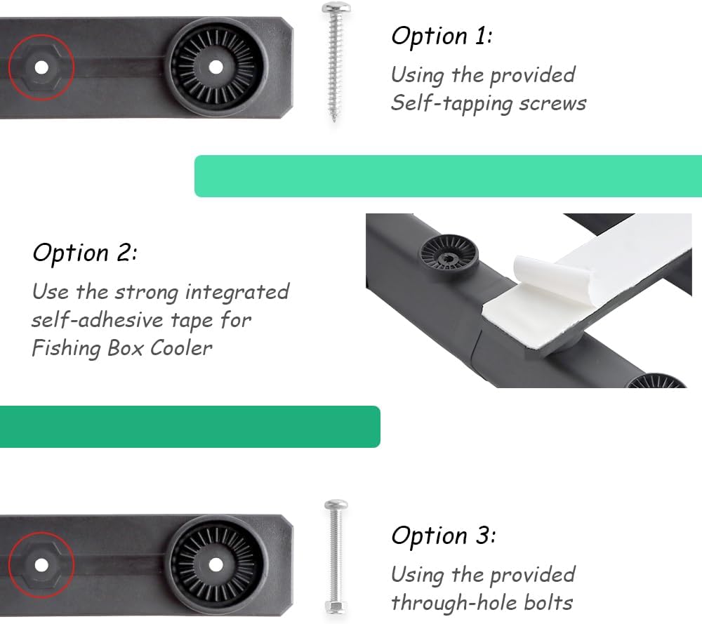Provide 3 installation methods,Self-Adhesive for Fishing Box Cooler, Self-tapping is used for thick-wall installation, and through-hole installation is used for thin-wall installation