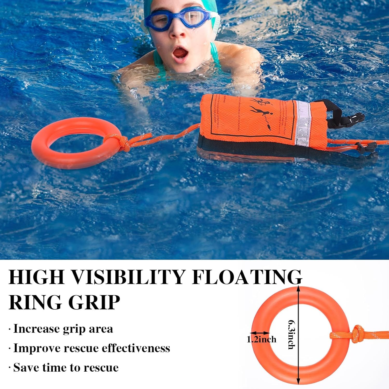 High Visibility Design for Easy Spotting: security bag and emergency whistle are colored vibrant orange for high visibility, making it easy to spot in water or in mid air when thrown towards the person needing rescue; The floating grab ring attached to the safety rope makes it easy for the person in need to see and hold it, increasing the chances of successful rescue