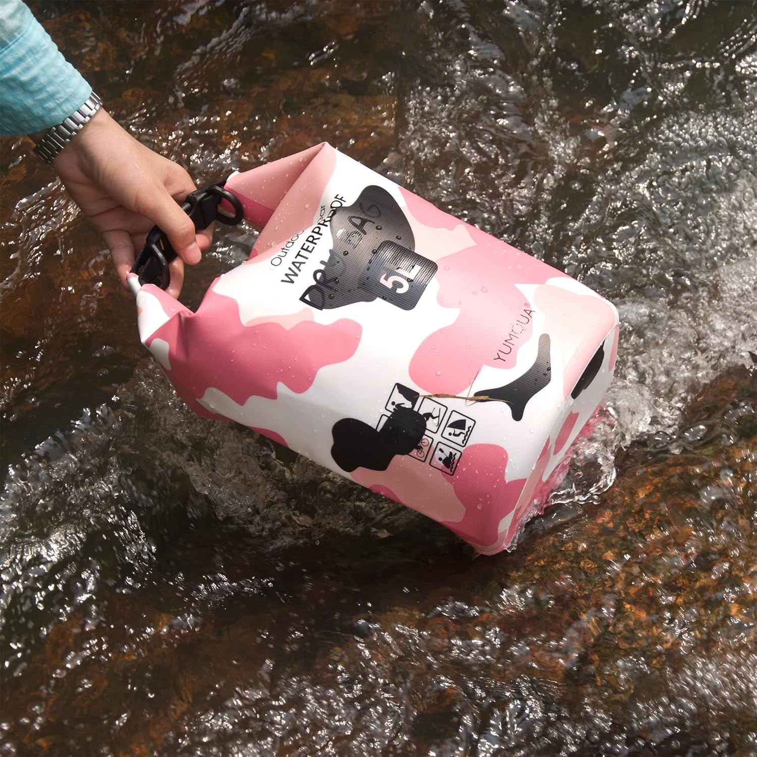 【EASY TO USE】 Just put your gear in bag, grab top woven tape and roll down tightly 3 to 5 times and then plug buckle to complete seal, whole process is very easy and quick. In order to help your bag float on the water better, be sure to leave some extra room for the air.