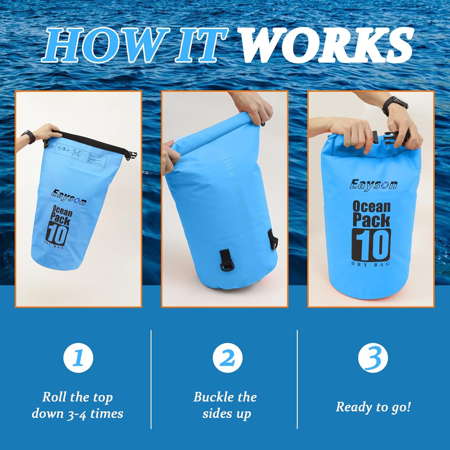 Waterproof Dry Bag Backpack – Floating Dry Sack Portable for Kayaking, Beach, Rafting, Boating, Hiking, Camping, Fishing (Blue, 10 Liter)