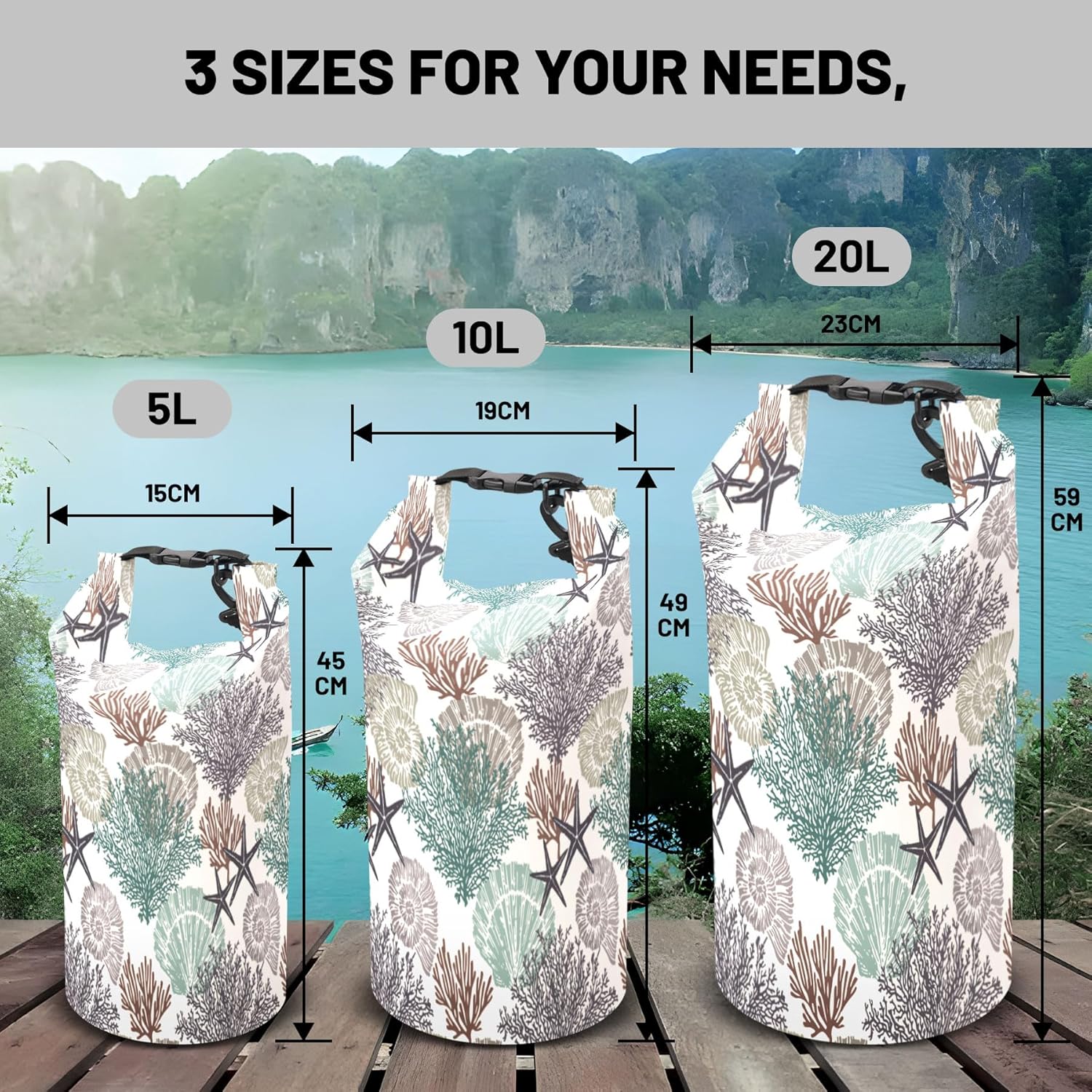 Waterproof Dry Bag,Roll Top Coastal Summer Beach Coral Starfish Waterproof Backpack 5L/10L/20L Floating and Lightweight Bags for Kayaking, Boating, Fishing, Swimming and Camping