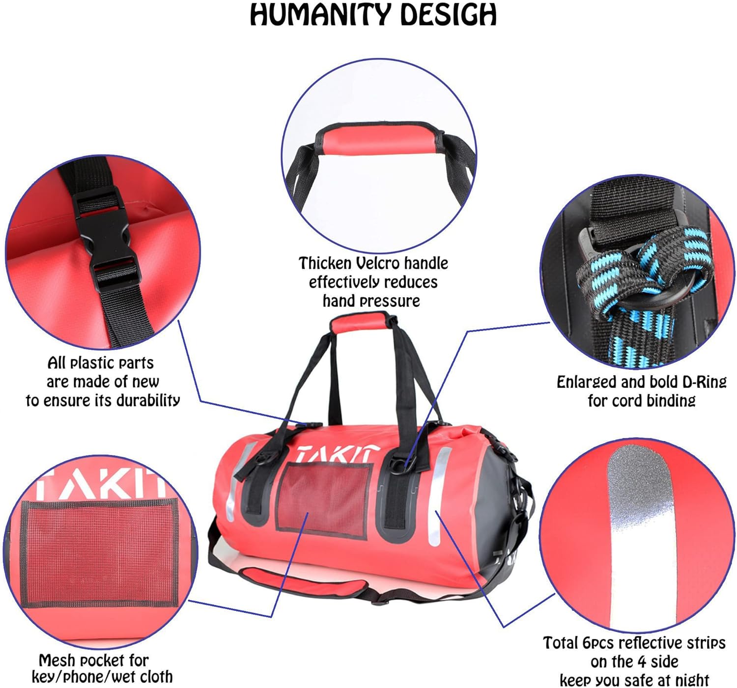Waterproof Duffle Bag Travel Dry Bag 40L Roll Top 500D PVC for Motorcycle Tail Kayaking Rafting Boating Swimming Camping Hiking Beach Fishing (40L, Red)