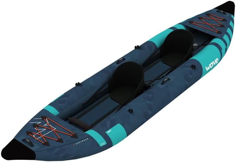 WAVE Explorer Inflatable PU Stitch Kayak | Inflatable Seat, Foot Pump, Kayak Paddle, 2 Detachable Fins, Kit Bag, and Repair Kit | Navy
