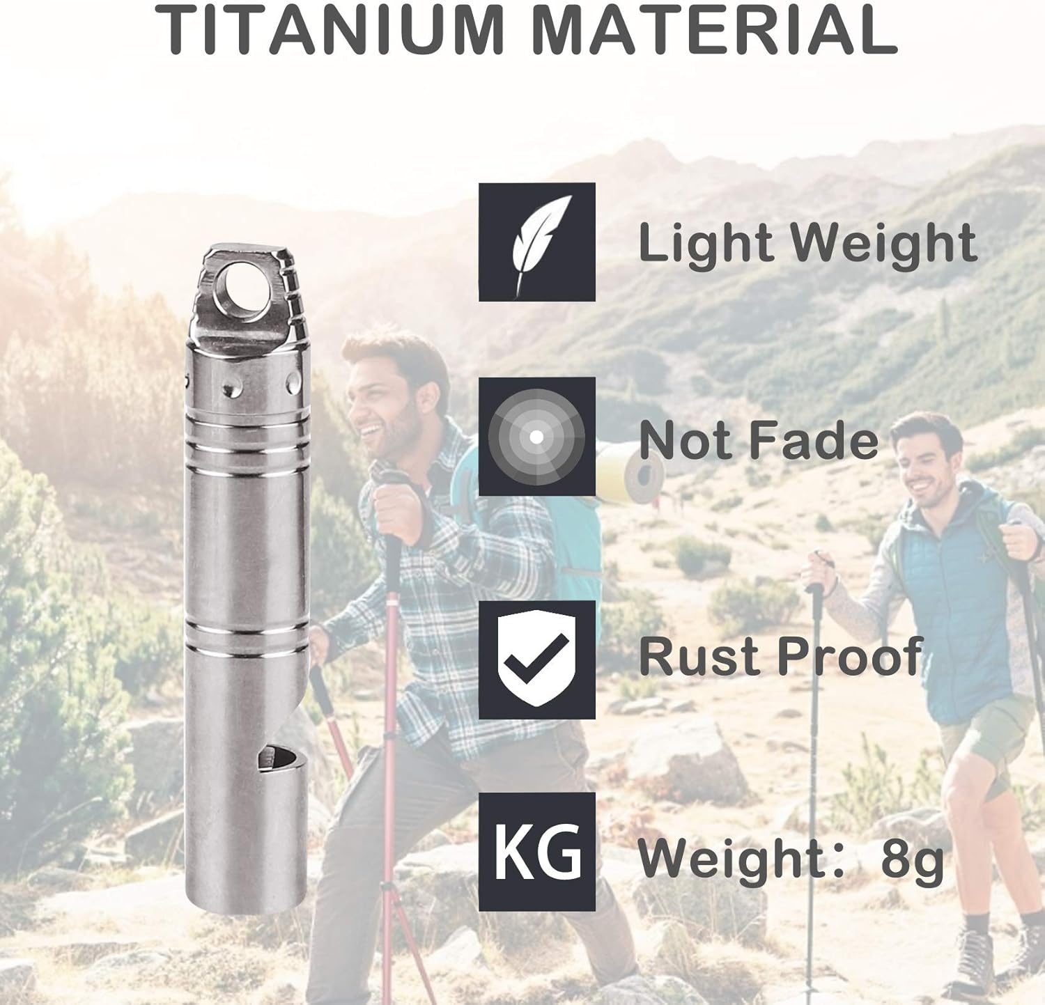 Titanium Whistle:This whistle is made of Titanium alloy,which is resistant to corrosion,lightweight,sturdy and durable
