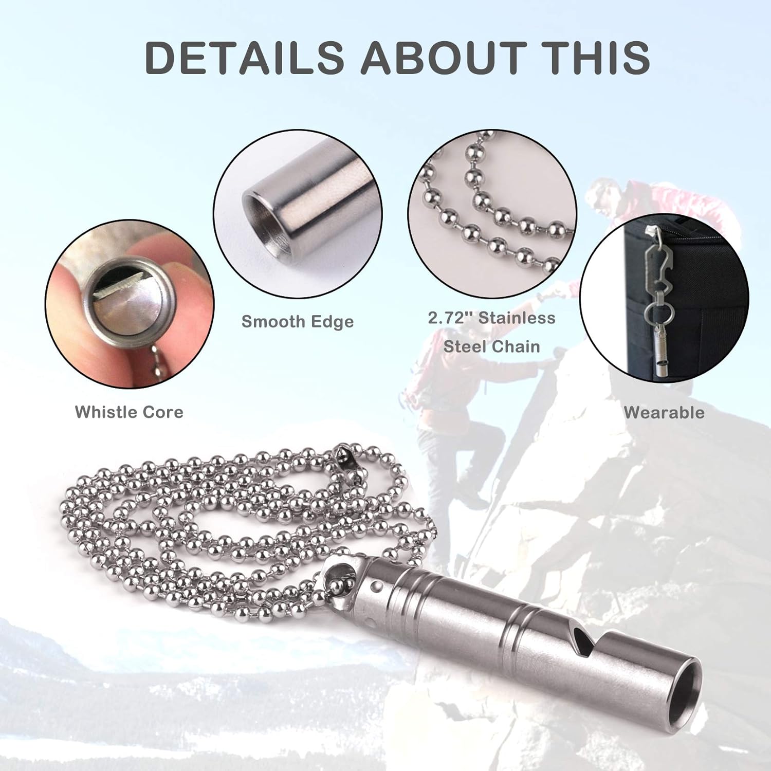 Titanium Whistle:This whistle is made of Titanium alloy,which is resistant to corrosion,lightweight,sturdy and durable