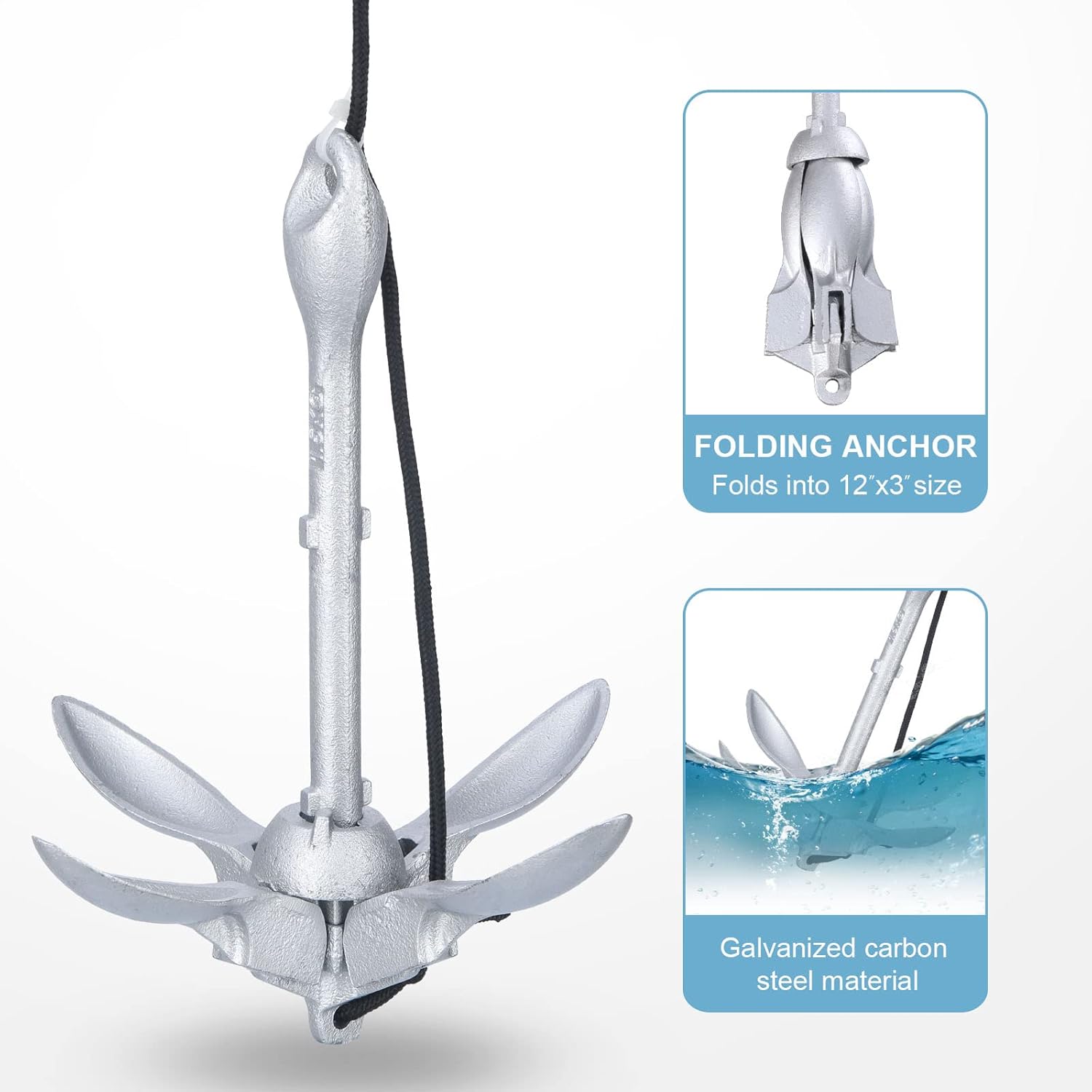 Lightweight and Portable:Weighing 3.5 pounds, making it perfect for kayaks, SUPs, and small boats.The foldable design allows the anchor to be easily stored in the included reinforced storage bag when not in use, making it convenient and compact for travel
