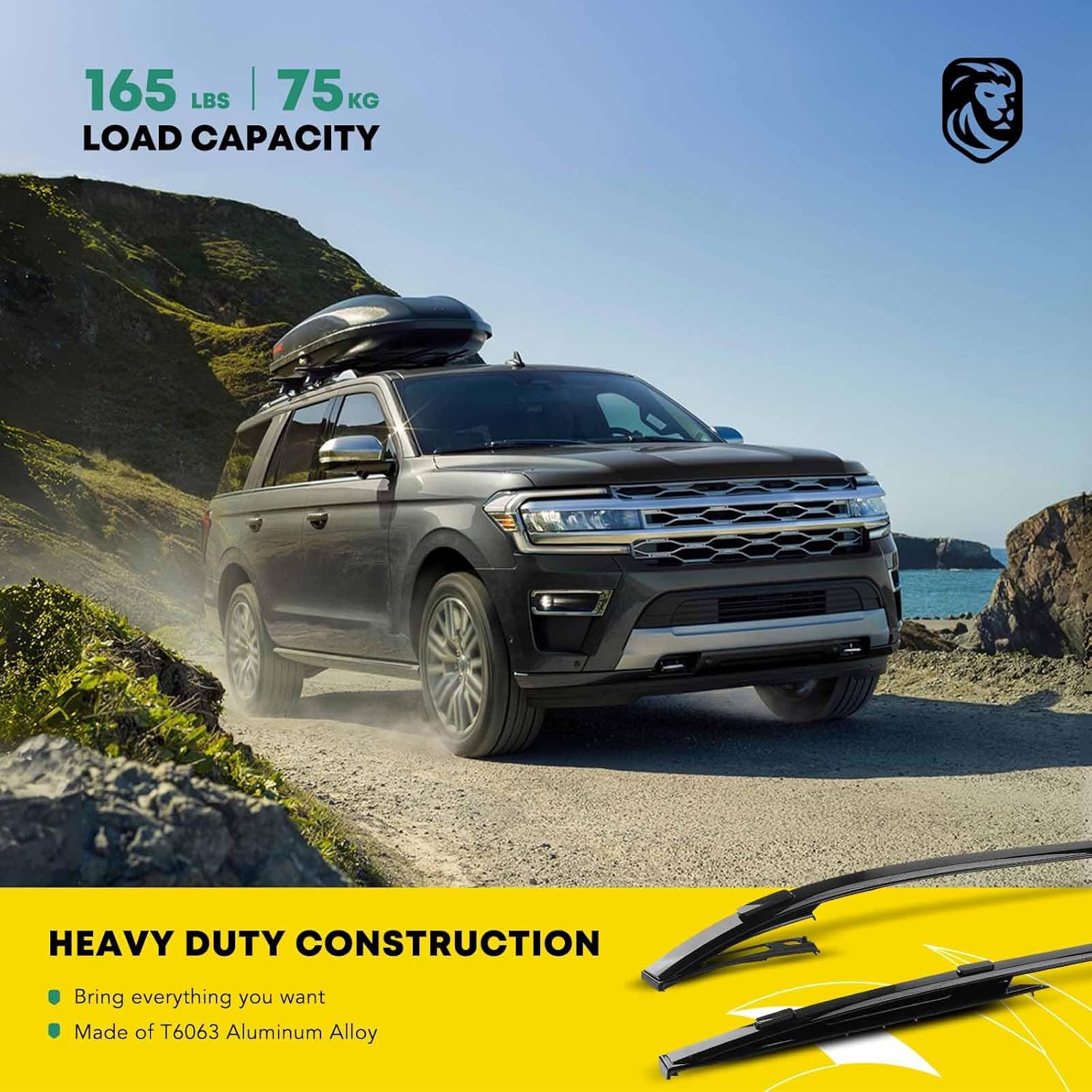 A Sturdy Foundation: Our premium T6063 aluminum roof rack rails come with TS16949/ISO9001 grade authoritative quality certification and the material has advanced anti-rust features. High-strength but lightweight Roof Rails have 165 lbs load capacity