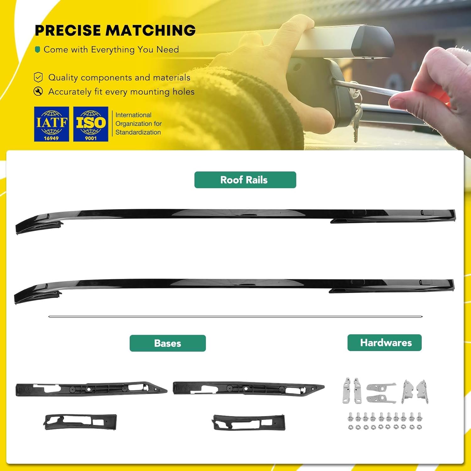 What You Will Get: Precision-manufactured roof rack side rails and hardware kit, a standard box with pearl-cotton treatment to protect roof cross bars perfectly | The roof side rails are covered by a One-Year Warranty to ensure user experience