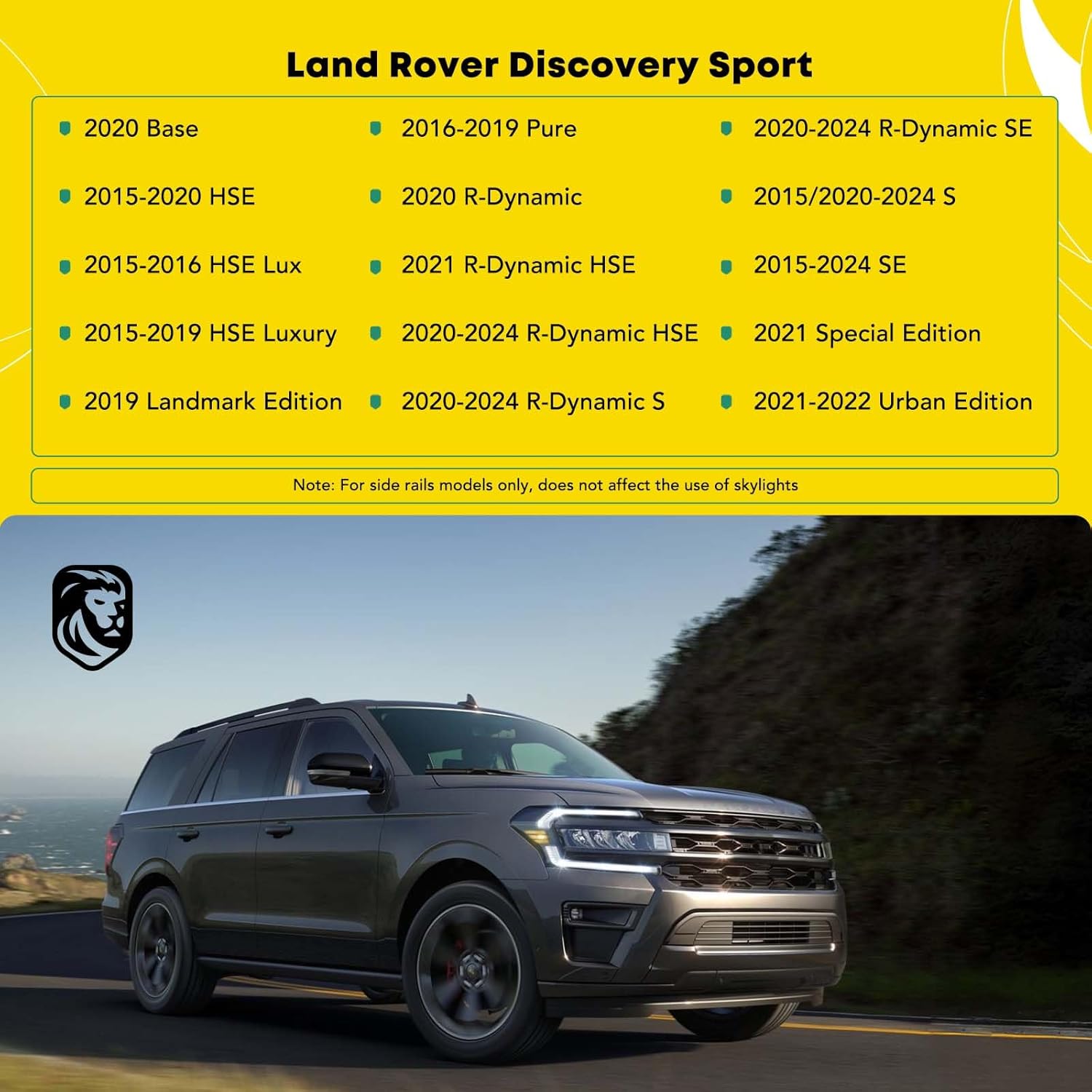 Compatible Vehicle: YHTAUTO Side Roof Rails fits for Land Rover Discovery Sport 2015-2024 (For Side Rails models only, does not affect Using Skylights). Please see more vehicle fitment on the Amazon Garage to ensure that the right product is purchased