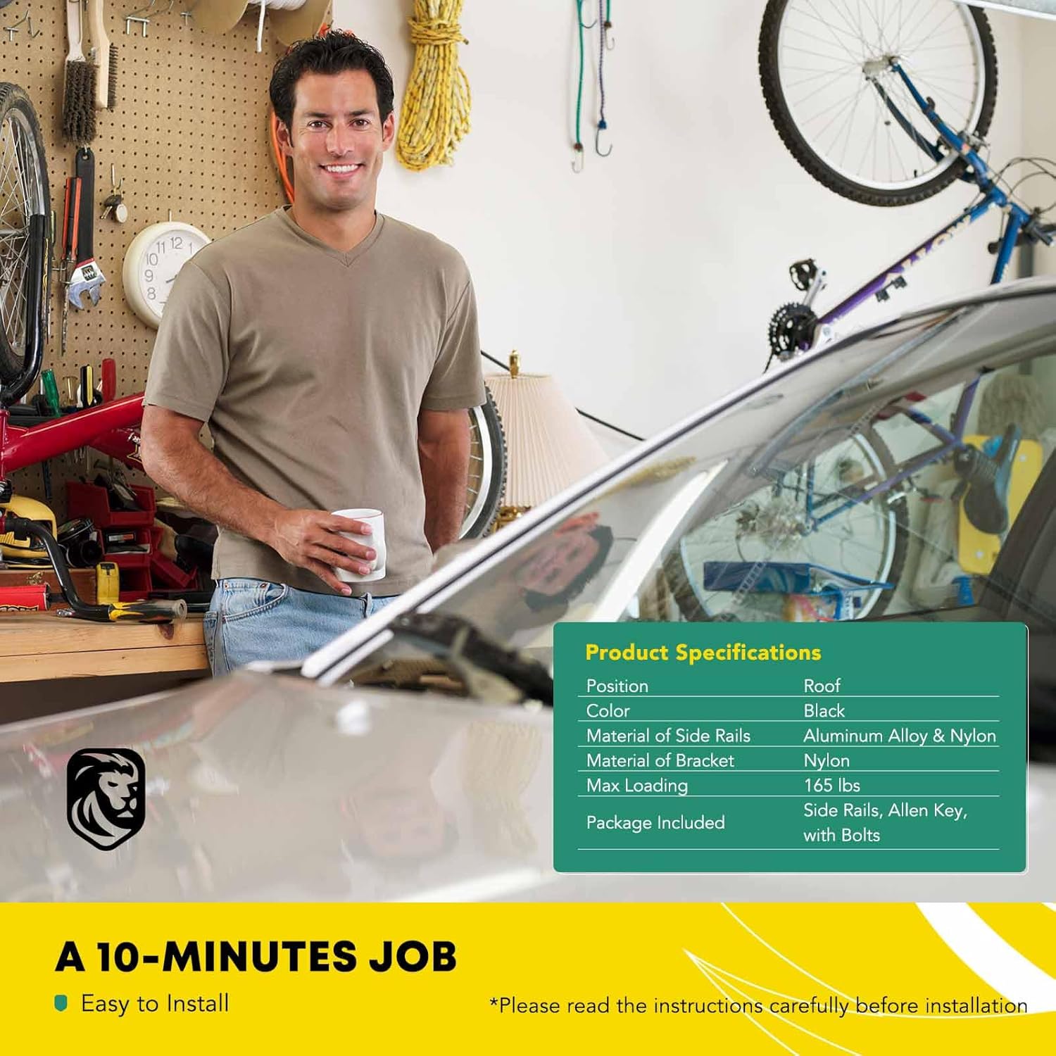 A 10 Minutes Job: Clear labels on roof rack rails cross Bars and considerate installation instructions make installation a breeze, and our roof rack rails are strictly and precisely manufactured, so no need to modify your car rooftop for unnecessary trouble