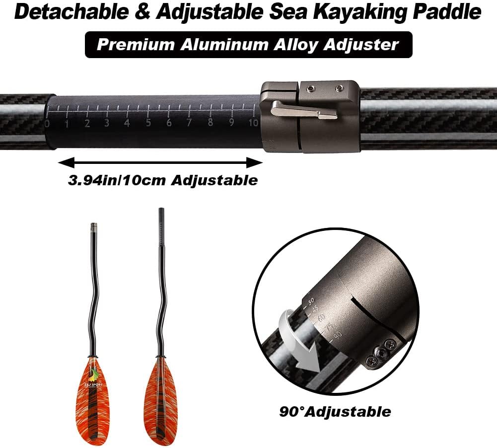 【Adjustable Kayak Paddle】Anti-corrosion aluminum alloy adjuster can easily adjust the length and angle. Length range: 200cm-210cm.