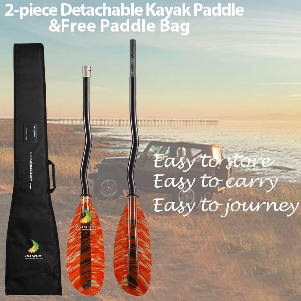 Z&J SPORT Kayak Paddle with Bag, Carbon Shaft Kayaking Paddle and Fiberglass Blade, Recreational Touring Kayak Paddle for Dynamic Kayaking in Ocean, River, Lake