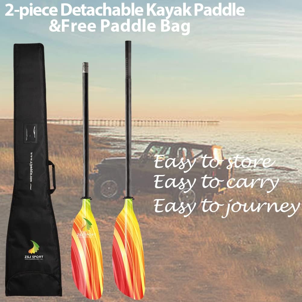 Z&J SPORT Sea Kayaking Paddle with Paddle Bag, SK-III Translucent Fiber Paddle Blade, Adjustable Carbon Shaft Kayak Paddle for Relaxed Kayaking Touring